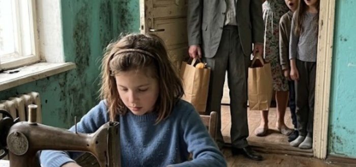 En velhavende udlejer ankom for at hente betaling — og fandt i stedet en ung pige, der sad og syede bare for at overleve, og afslørede en sandhed,