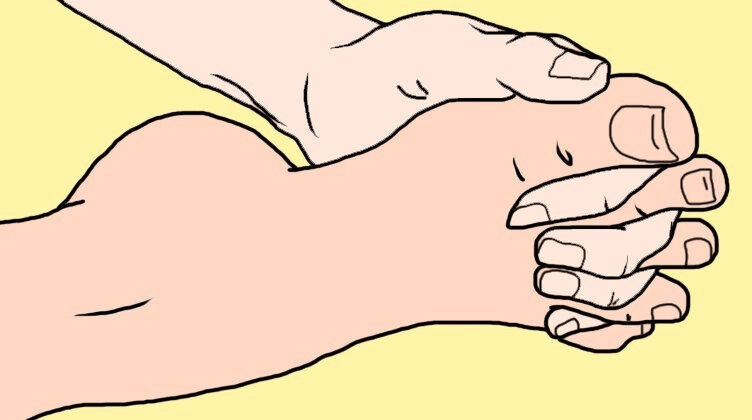 - Træk fingrene på din højre hånd ind mellem tæerne på din venstre fod.