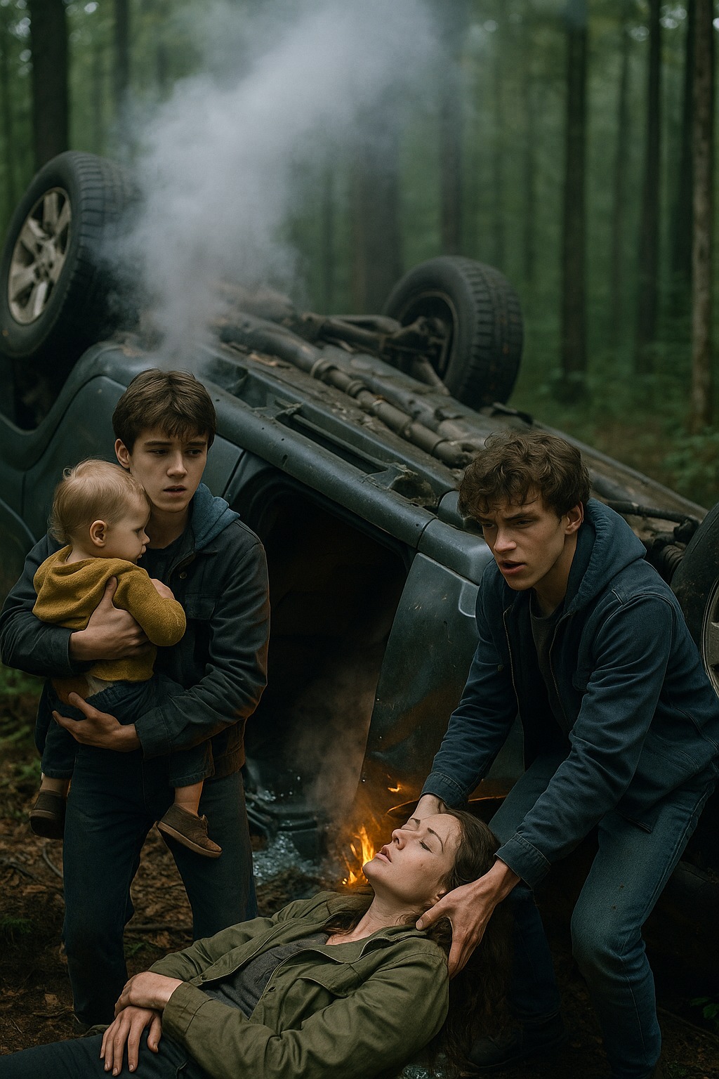 De løb hen til bilen. Indeni — en bevidstløs kvinde, stadig spændt fast i selen. På bagsædet — en lille dreng, omkring to år, i autostol.