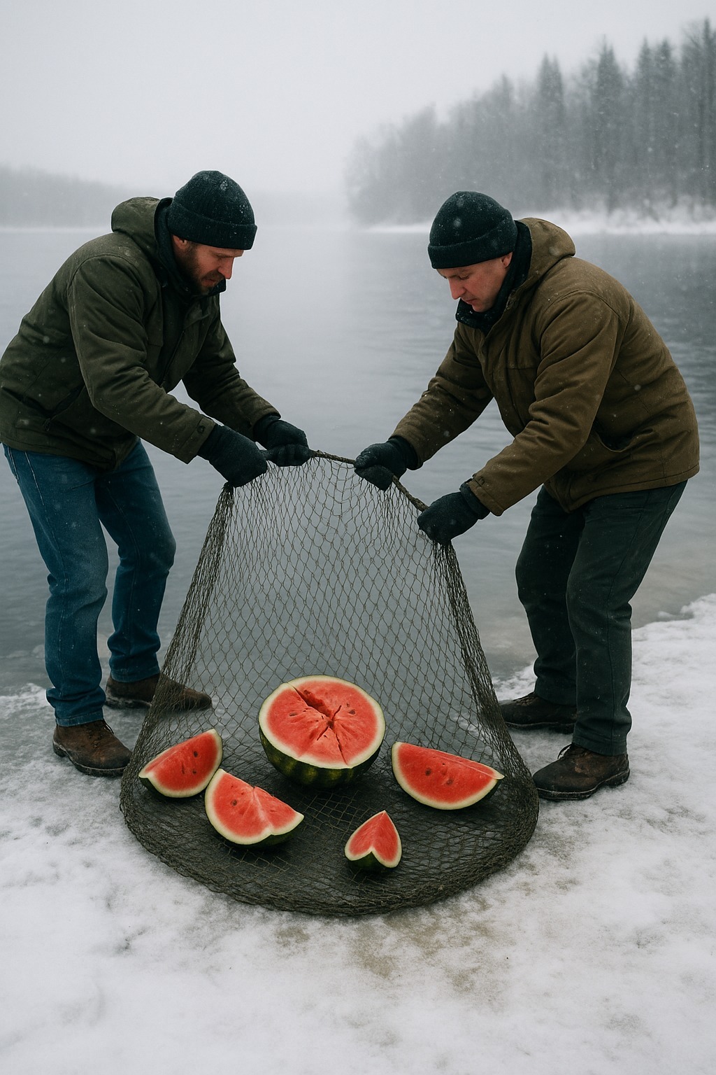 — Åh, skidt med fiskeriet, sagde Pasha og trak en stor, kold vandmelon frem.