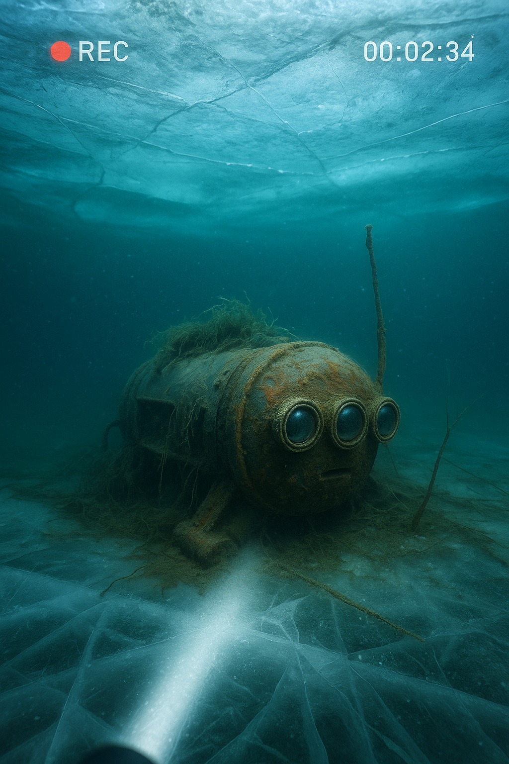 En uge senere vendte de tilbage. Og de fandt ingenting. På bunden er der kun en fordybning presset ned i dyndet og et spor, som om noget tungt var blevet trukket mod en dybere del af søen. Mekanismen er væk. Optagelsen forbliver.