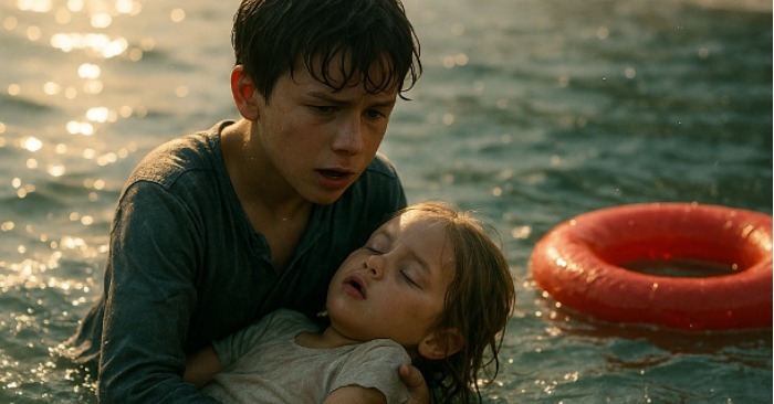 Da han nåede frem, så han en lille pige på omkring fem år. Ringen var vendt rundt, og hun sank. Luca greb hendes hånd i sidste sekund. Hun var slap, bleg. Han vendte hende på ryggen — og mærkede noget skubbe dem nedefra.