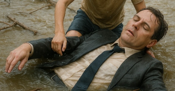 Det føltes som en evighed, før de nåede det lave vand. På bredden stod folk: nogle filmede, andre bad. Manden blev lagt på jorden og forsøgte at trække vejret igen. Léon rystede ukontrolleret, tænderne klaprede, tøjet klistrede til kroppen — men han flyttede sig ikke fra hans side.
