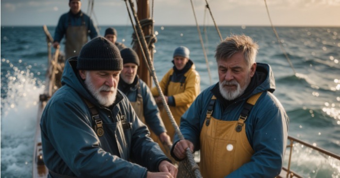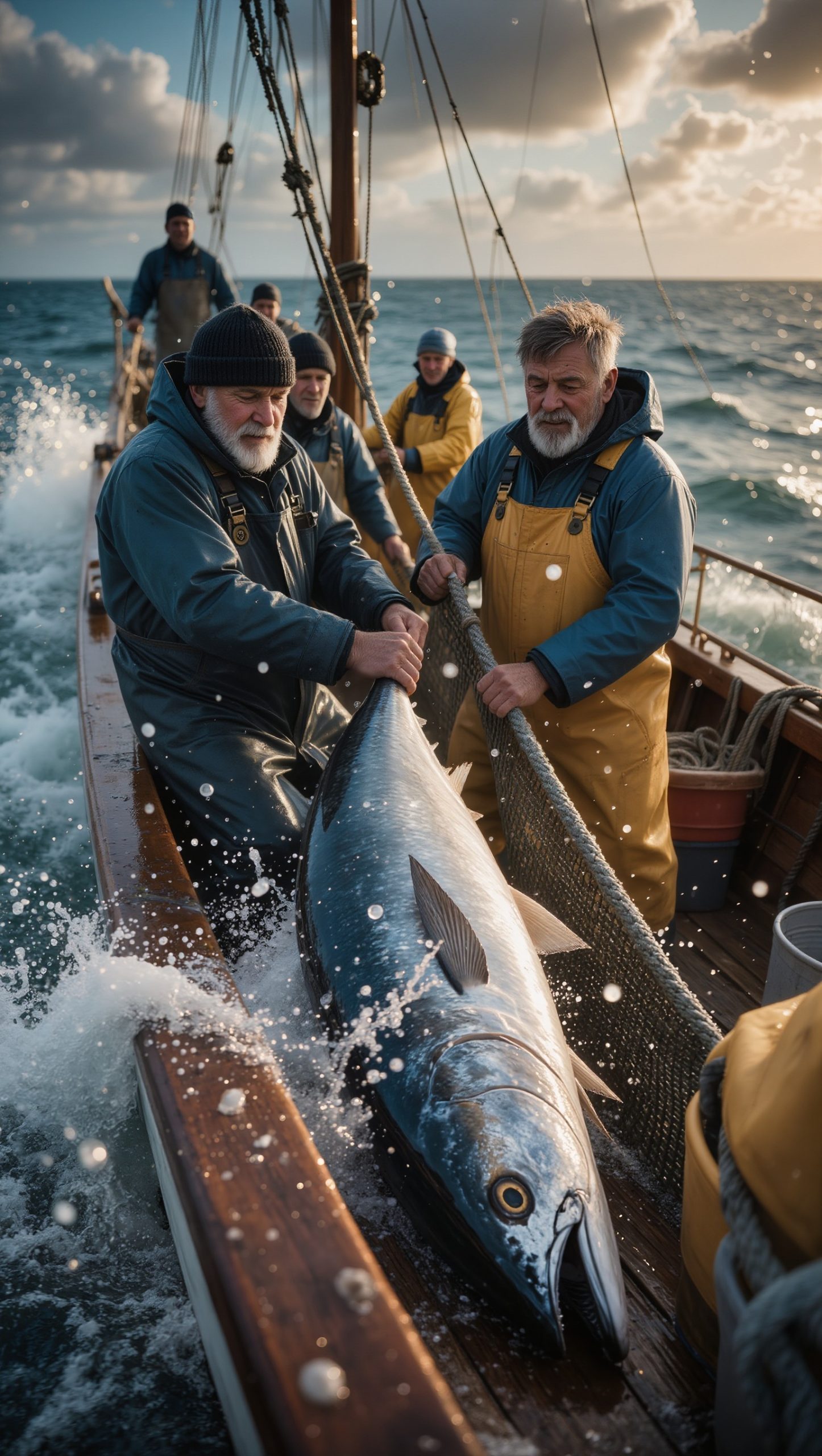 Men denne morgen var fangsten usædvanlig allerede fra begyndelsen. Nettet, som blev sænket i dybet, strammede pludseligt, som om det havde hængt fast i en klippe. Båden hældede, rebene knagede, vandet boblede rundt om dem.