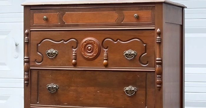Denne kommode stod engang i mine forældres hus — pålidelig, robust, men med tiden mistede den sin plads i det moderniserede interiør. Da renoveringen begyndte, blev det klart, at den så malplaceret ud i det nye moderne interiør.