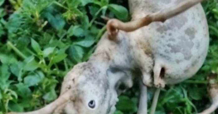 Da en beboer i en lille landsby gik ud i sin have om morgenen, bemærkede hun noget, der straks fik hende til at standse op. På jorden lå et mærkeligt, aflangt objekt med et langstrakt »hoved« og tynde, rørformede vedhæng, der lignede lemmer.