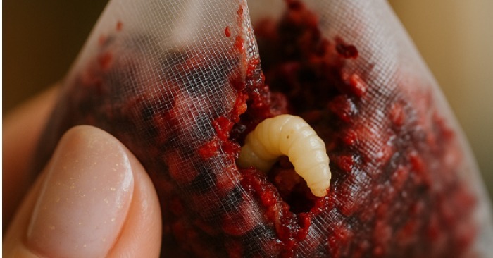 Hendes hjerte bankede så højt, at hun troede, naboerne kunne høre det. Hun greb kassen, tømte alle poserne ud på bordet og begyndte at tjekke dem en efter en. Nogle var fine, men to så hævede og ujævne ud. Hun rev dem op som i raseri – og fandt en lille kokon i en af dem.