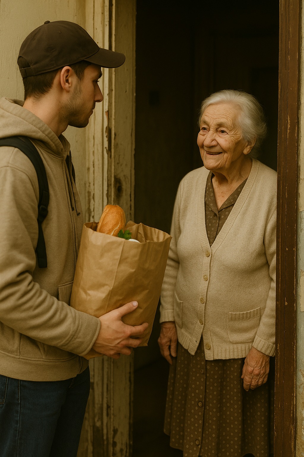 Hver morgen kom han til det samme hus – gammelt, med afskallede vægge og vinduer, bag hvilke der næsten ikke var nogen bevægelse. Denne lejlighed var altid den sidste på hans leveringsliste. Den samme kvinde bestilte altid lidt – brød, mælk, et par æbler, nogle gange te. Og hun hilste altid på ham med et smil.