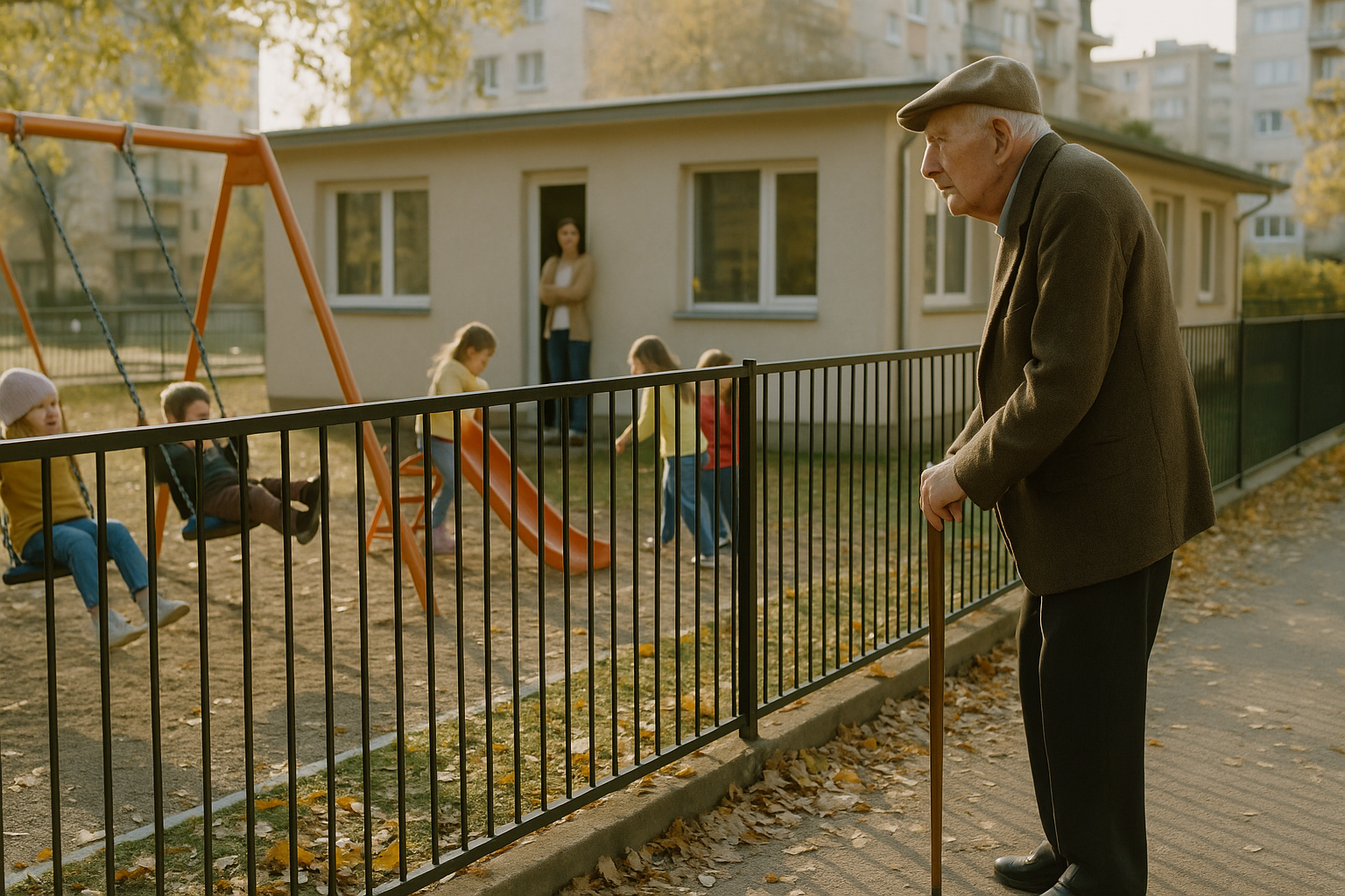 Børnene lagde mærke til ham først. “Hegnfarfar er her igen!” råbte lille Mia en tirsdag, mens hun trykkede næsen mod glasvinduet. Nogle børn vinkede til ham fra vinduet. Den gamle mand løftede hånden, først lidt akavet, så mere selvsikkert, og et antydning af et smil dukkede op under hans hvide overskæg.