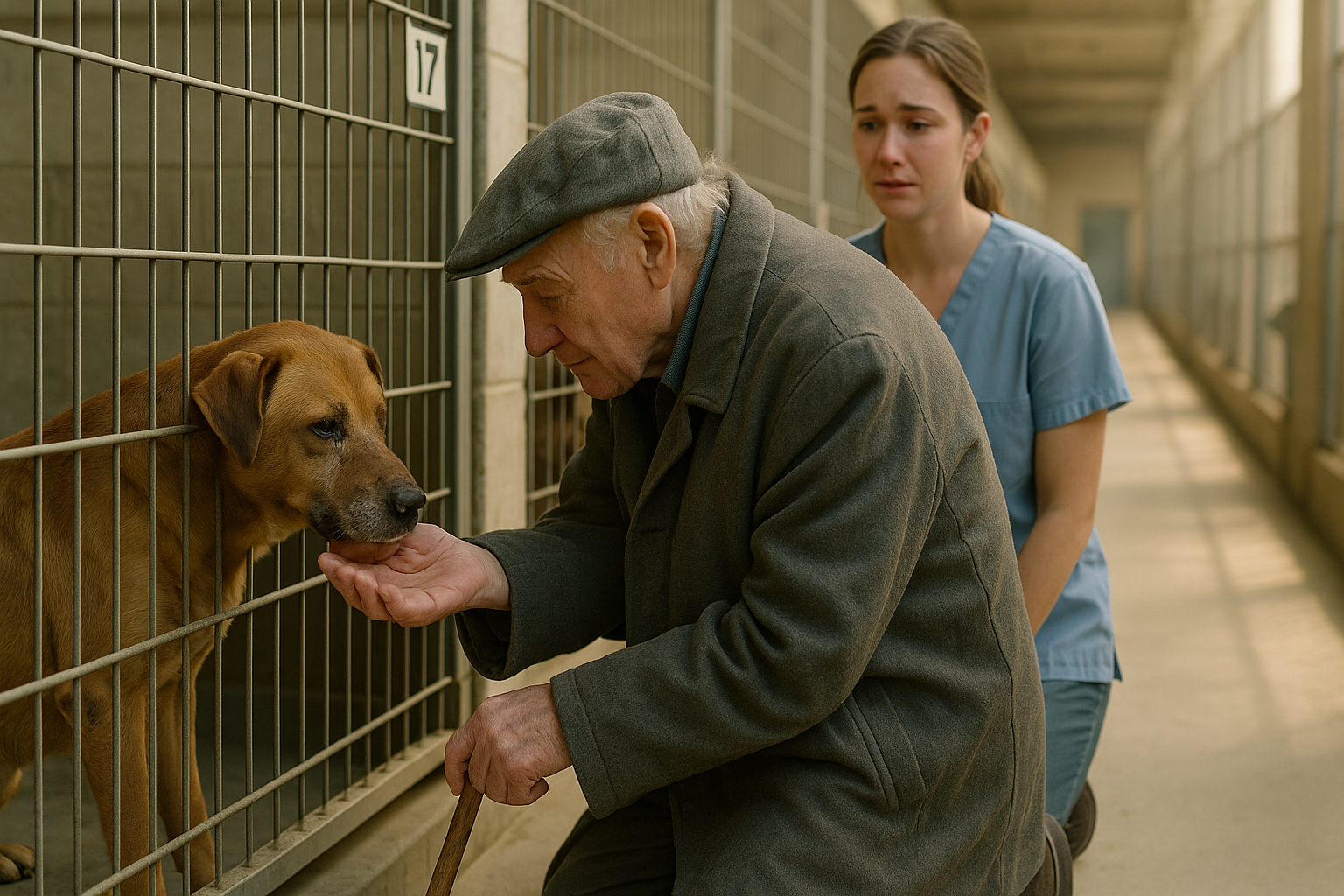 Inde i gangen omfavnede den våde lugt af desinfektion og pels dem. Da de gik ned ad korridoren, gøede hunde, haler slog, poter skrapede mod metalgitre. Bruno, i bur nummer 17, lavede ingen lyd. Han lå bare på sin tæppe, hans ene øje sløvt og årvågent.