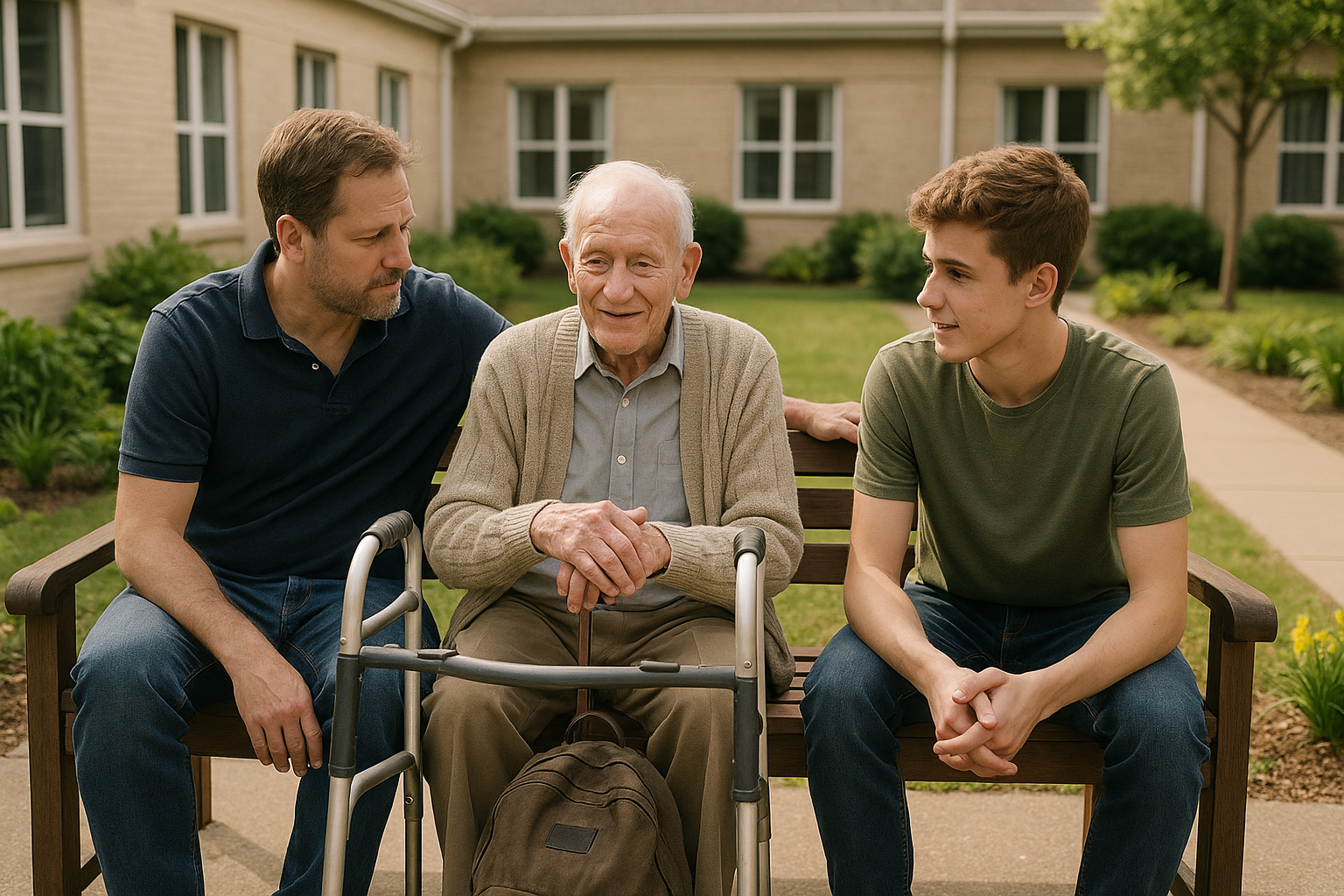 De sad der sammen, tre generationer på en slidt træbænk, sollys varmede deres ansigter. Intet kæmpe skete i det øjeblik. Plejehjemmet forsvandt ikke. Sygdommen i Marks hjerne gik ikke tilbage. De måneder, de havde været væk, blev ikke magisk slettet.