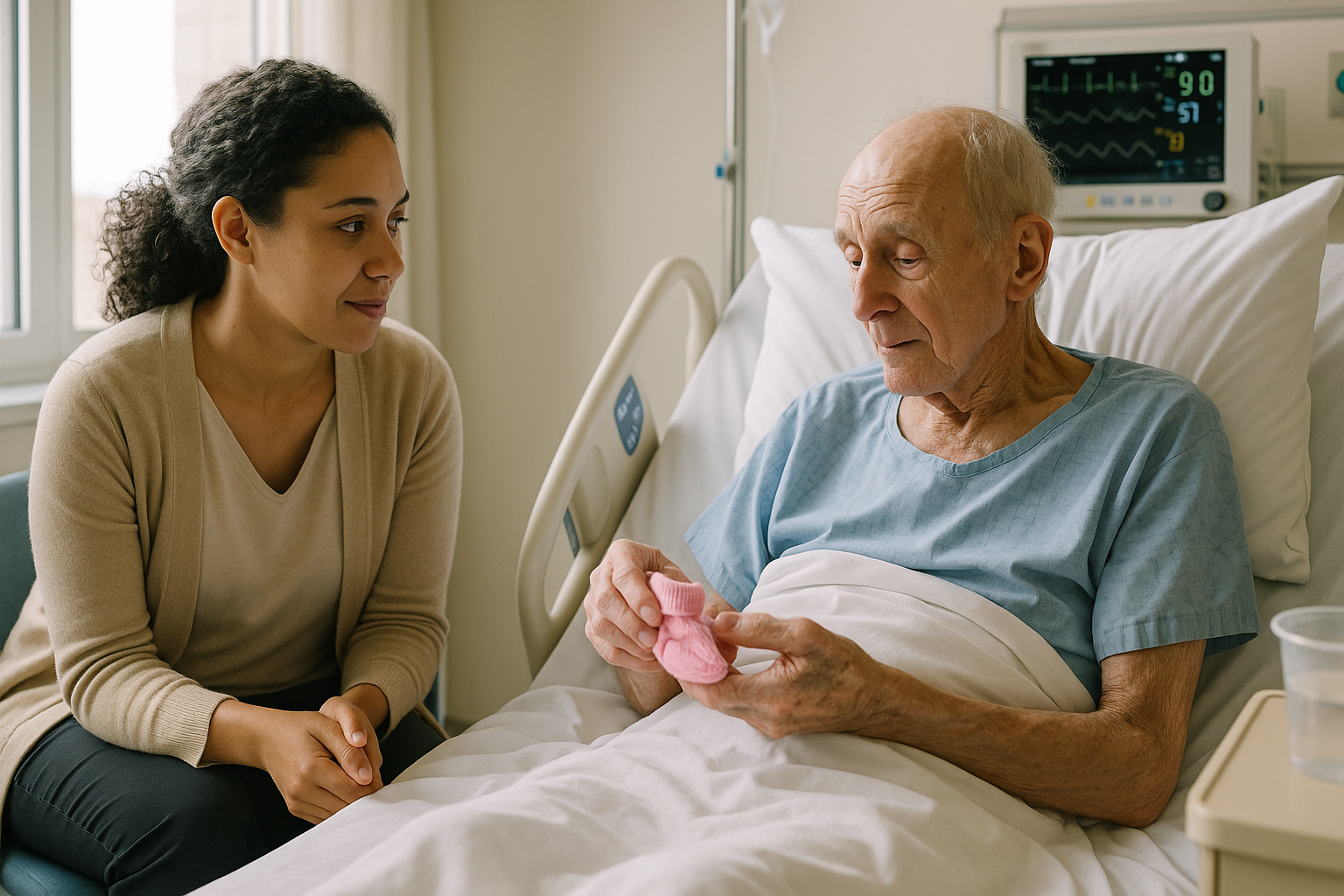 Nogle gange, når hospitalets gange er for stille, tænker jeg på den gamle mand på stue 17 og barnet, der lovede at holde en babysok fra at være ensom. Og jeg tænker, at måske er den grimmeste straf ikke at blive hadet, men at komme for sent. Så sent, at alt, du kan tilbyde, er en rystende hånd, en lyserød sok og femten lånte minutter til at sige farvel.