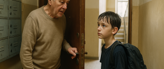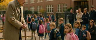 “title”: “Den gamle mand stod altid ved børnehaveporten, indtil en lærer fulgte efter ham og fandt ud af, hvem han ventede på”,