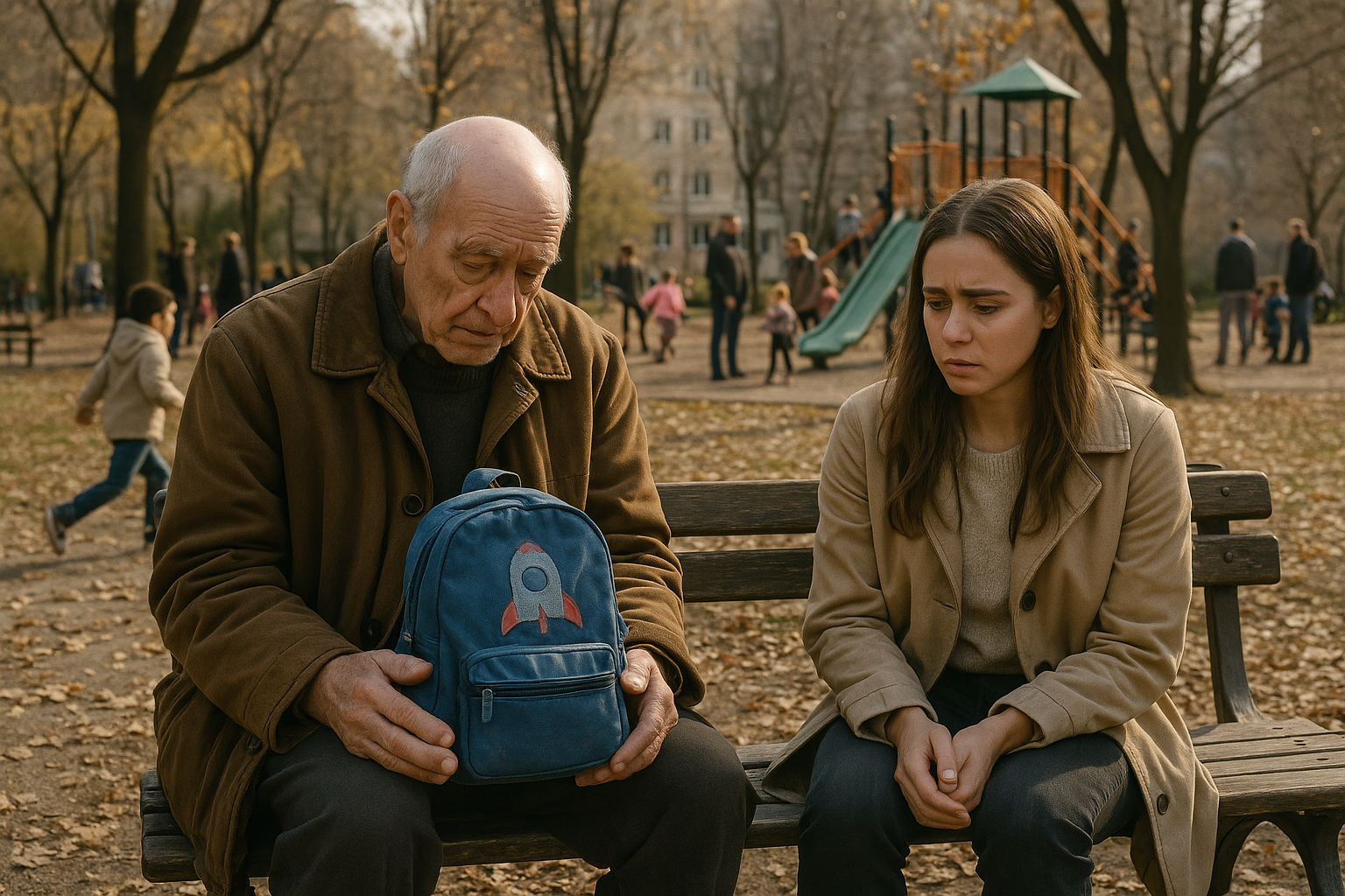 I tre måneder var naboerne blevet vant til ham: tynd, sammenbøjet, altid iført den samme slidte brune frakke, gråt hår omhyggeligt kæmmet tilbage. Han hed Daniel, men folk i området kaldte ham blot ”bænkemanden”. Han talte sjældent. Han sad bare og kiggede hen over stien på legepladsen, med øjnene rettet mod børnene, som kravlede, faldt, lo og løb hen til deres forældre.