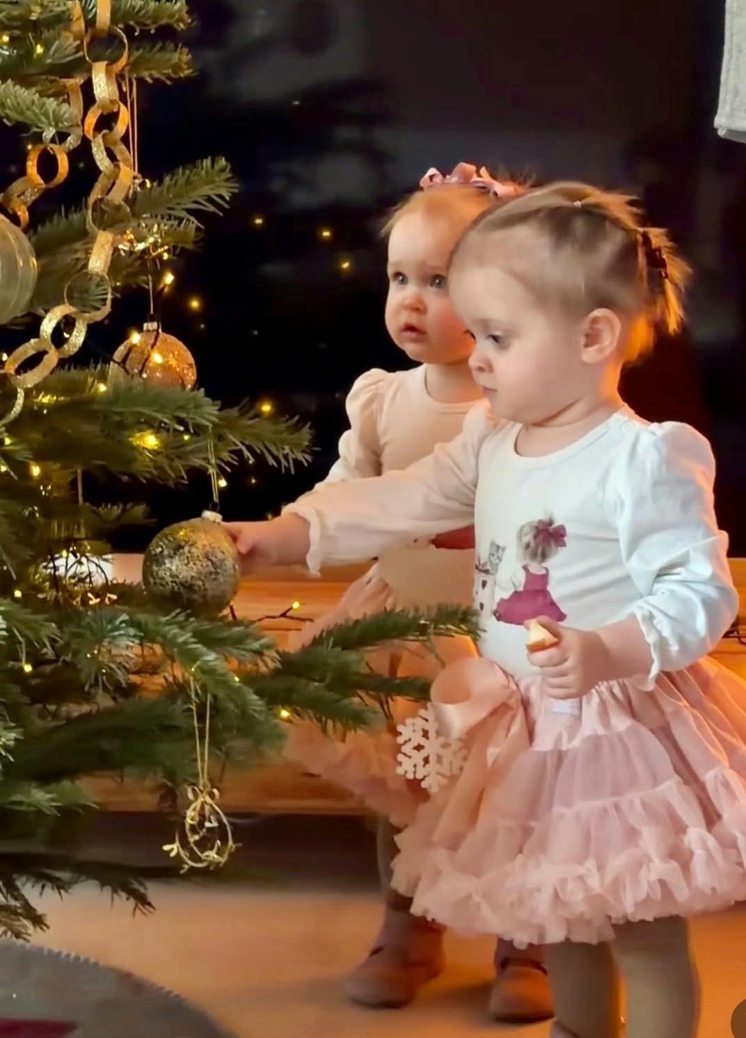 Sidste december var Emma og Nora stadig helt nyfødte og alt for små til at registrere lys, pynt og traditioner. Nu, efter at have rundet deres første fødselsdag, er de nysgerrige nok til at lade sig fascinere – også selvom de endnu ikke forstår, hvad jul egentlig er.