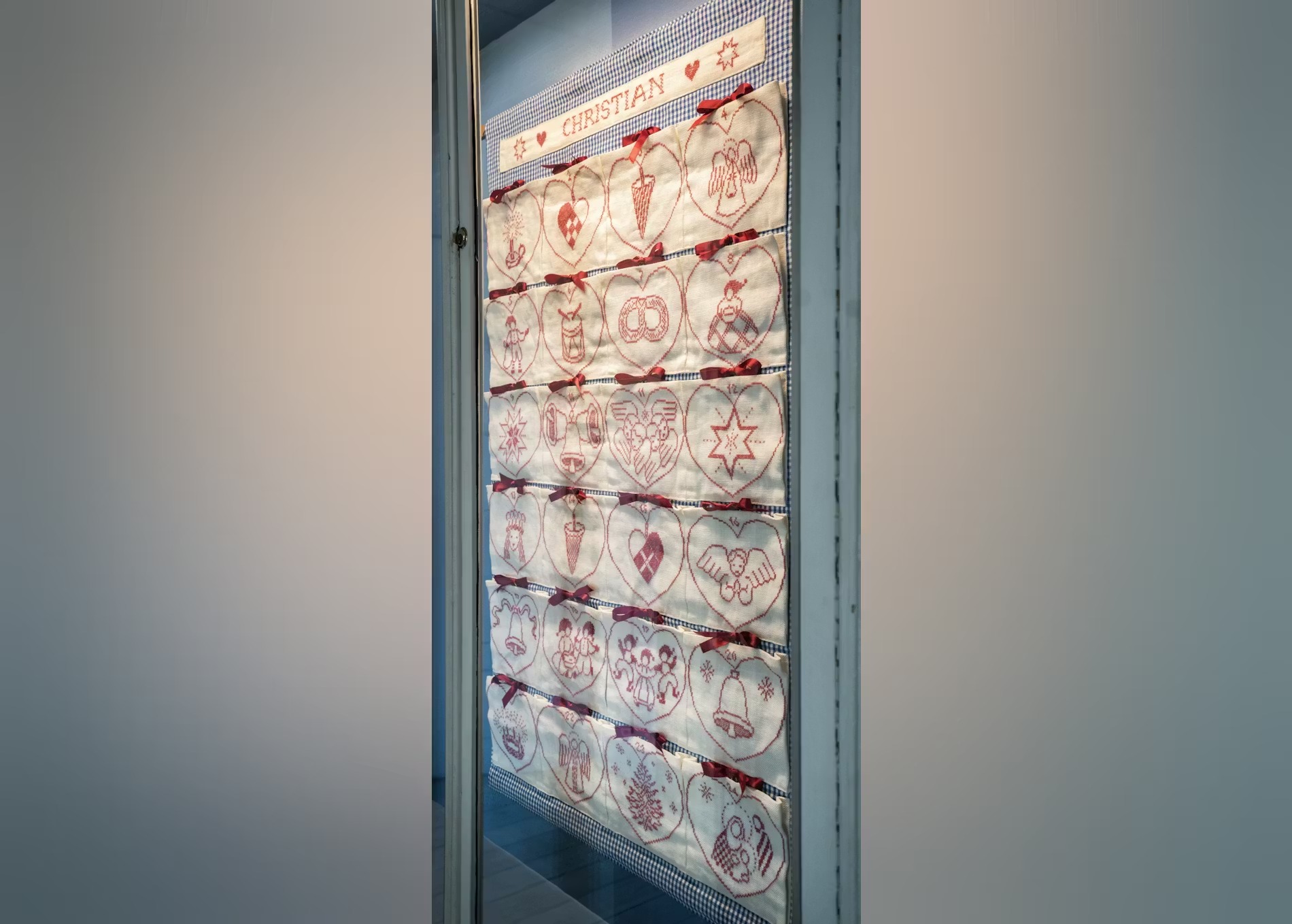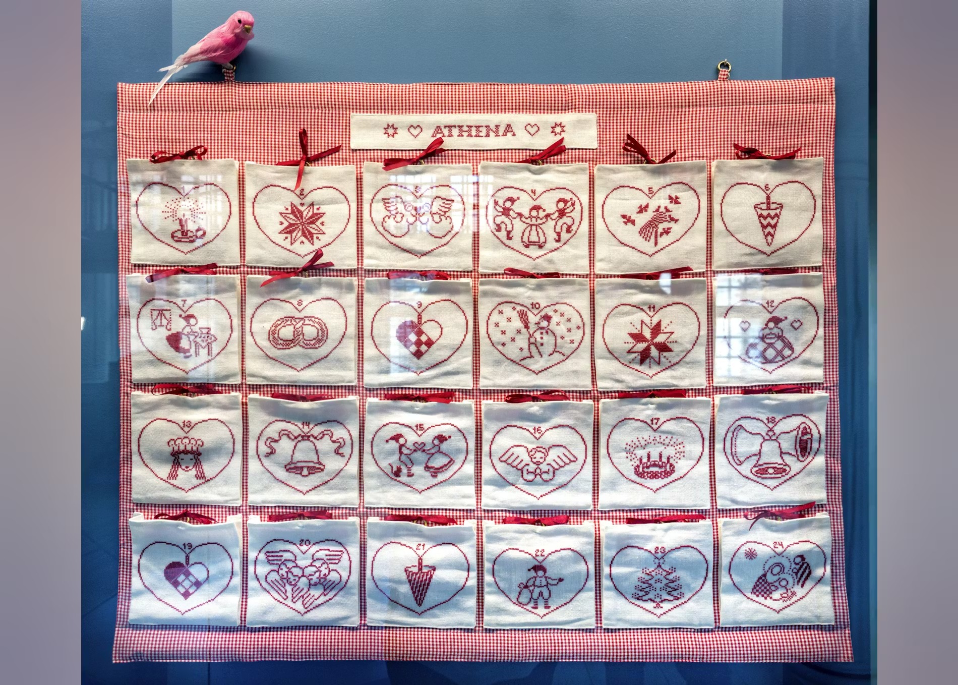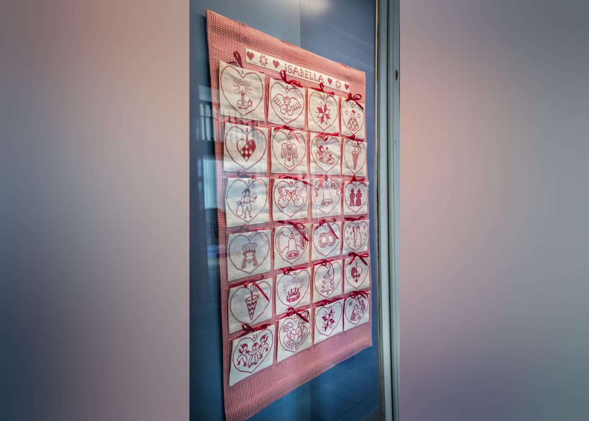 Hvert af hendes otte børnebørn har nemlig modtaget sin egen broderede julekalender. Ingen af dem er ens, og hvert design er tilpasset det enkelte barn. Kun to datoer går igen på alle kalendere – den første og den sidste dag i december – resten er unikke detaljer.