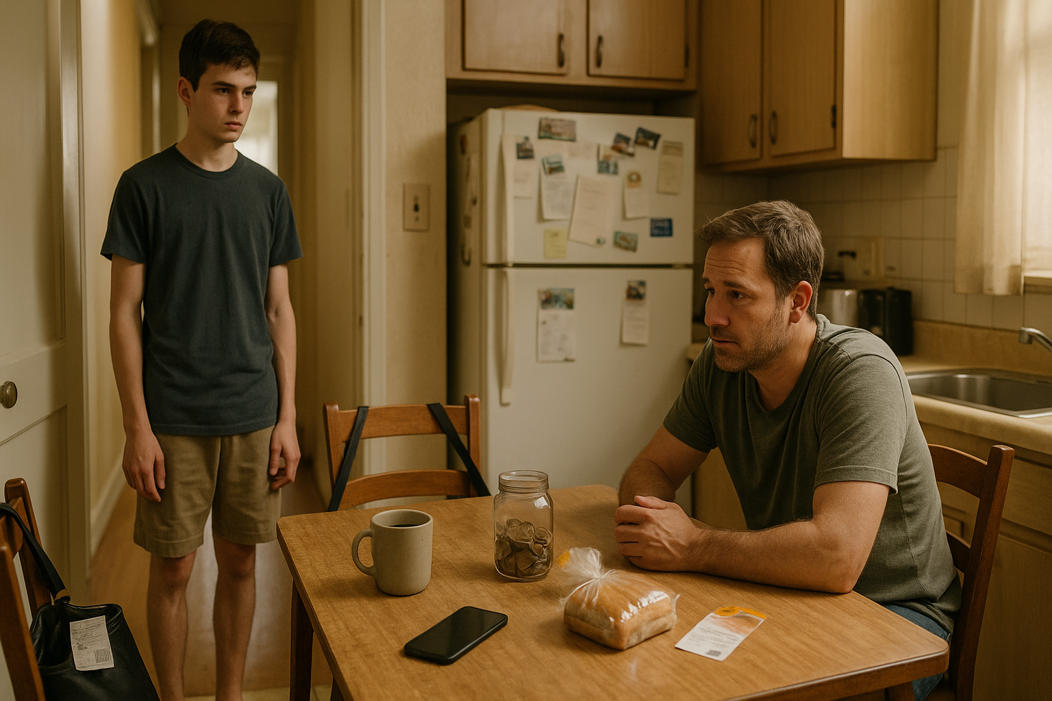 Min mor gik rundt i køkkenet og brokkede sig over regningerne. Hun talte mønter op fra et glas for at betale min skolabusbillet. Far hummede en gammel sang inde på badeværelset.