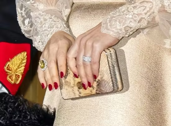 Men det var især én detalje, der fik modeinteresserede til at spidse øjne. Til sit nytårslook havde dronningen valgt en moderne clutch, som skilte sig ud fra det ellers meget klassiske udtryk. Den gyldne clutch med slangeskindsprint og funklende krystaller gav looket en cool kant og viste en mere legende side af dronningens stil.