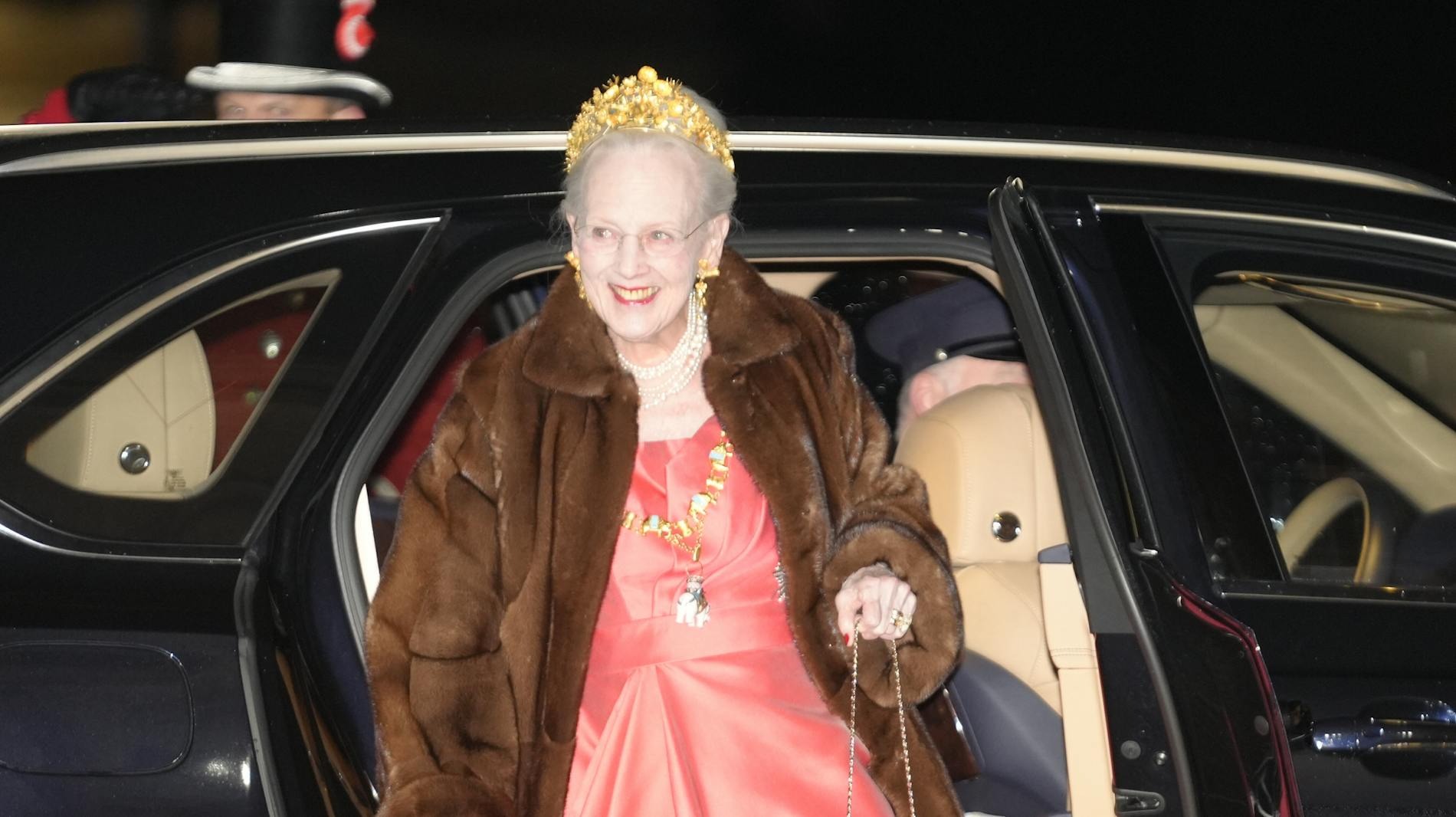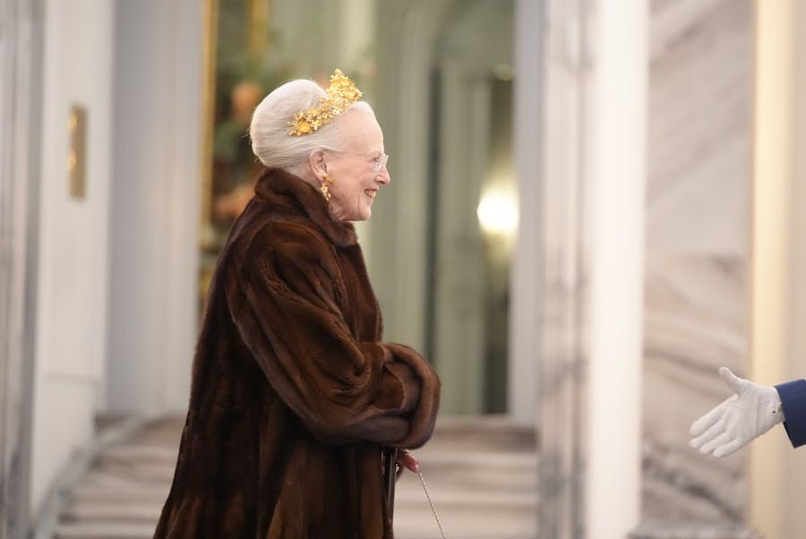 Som en af de sidste gæster ankom Dronning Margrethe kort før klokken 20 foran Christian VII’s Palæ. Og det var netop hendes ankomst, der fik mange til at spærre øjnene op. På hovedet bar hun diademet Naasut – et særligt smykke udført i grønlandsk guld, som rummer både historisk og symbolsk betydning.