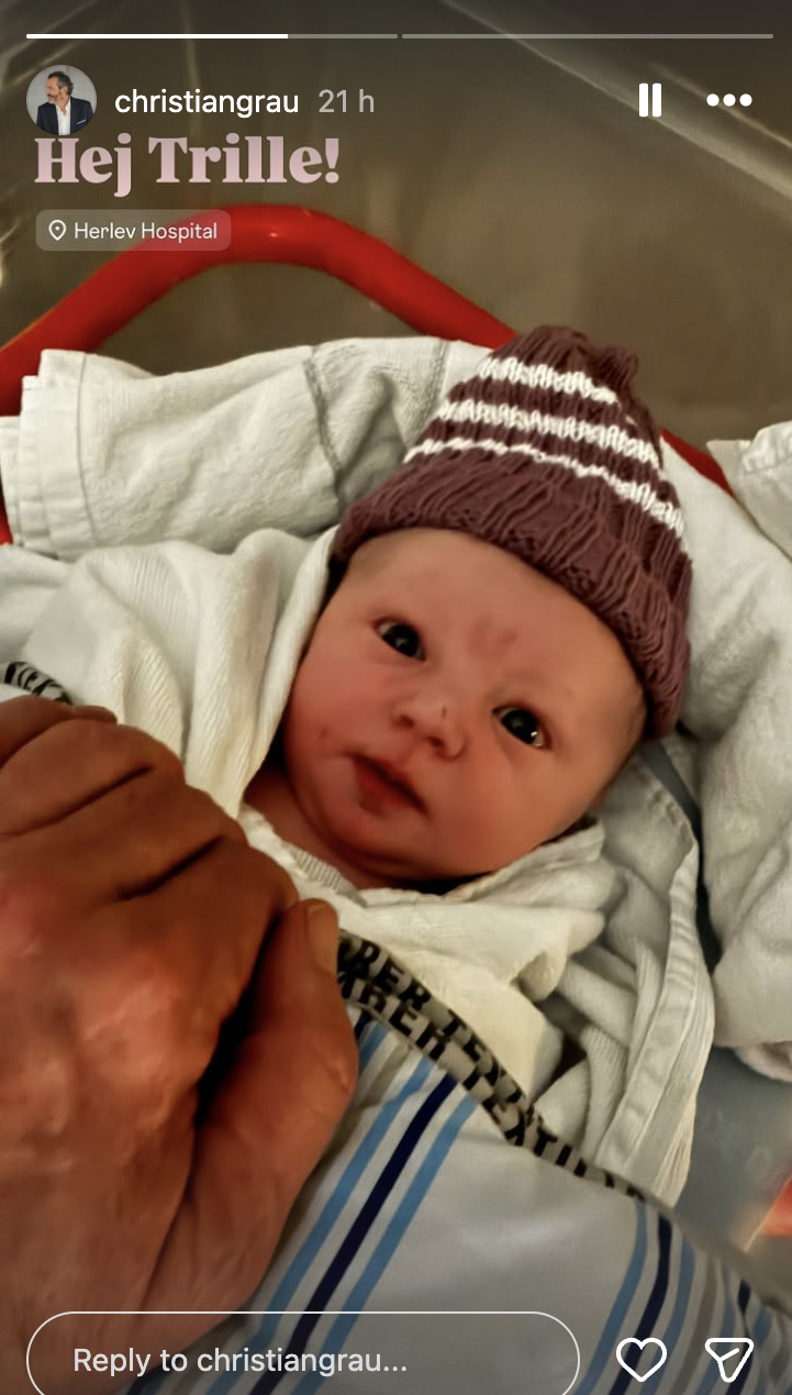 Den glædelige nyhed delte Christian Grau selv i en Instagram-story. Her lå den lille ny fredeligt i en vugge på Herlev Hospital, ledsaget af en enkel, men følelsesladet hilsen: “Hej Trille!”. Et navn, der straks vakte smil hos mange.