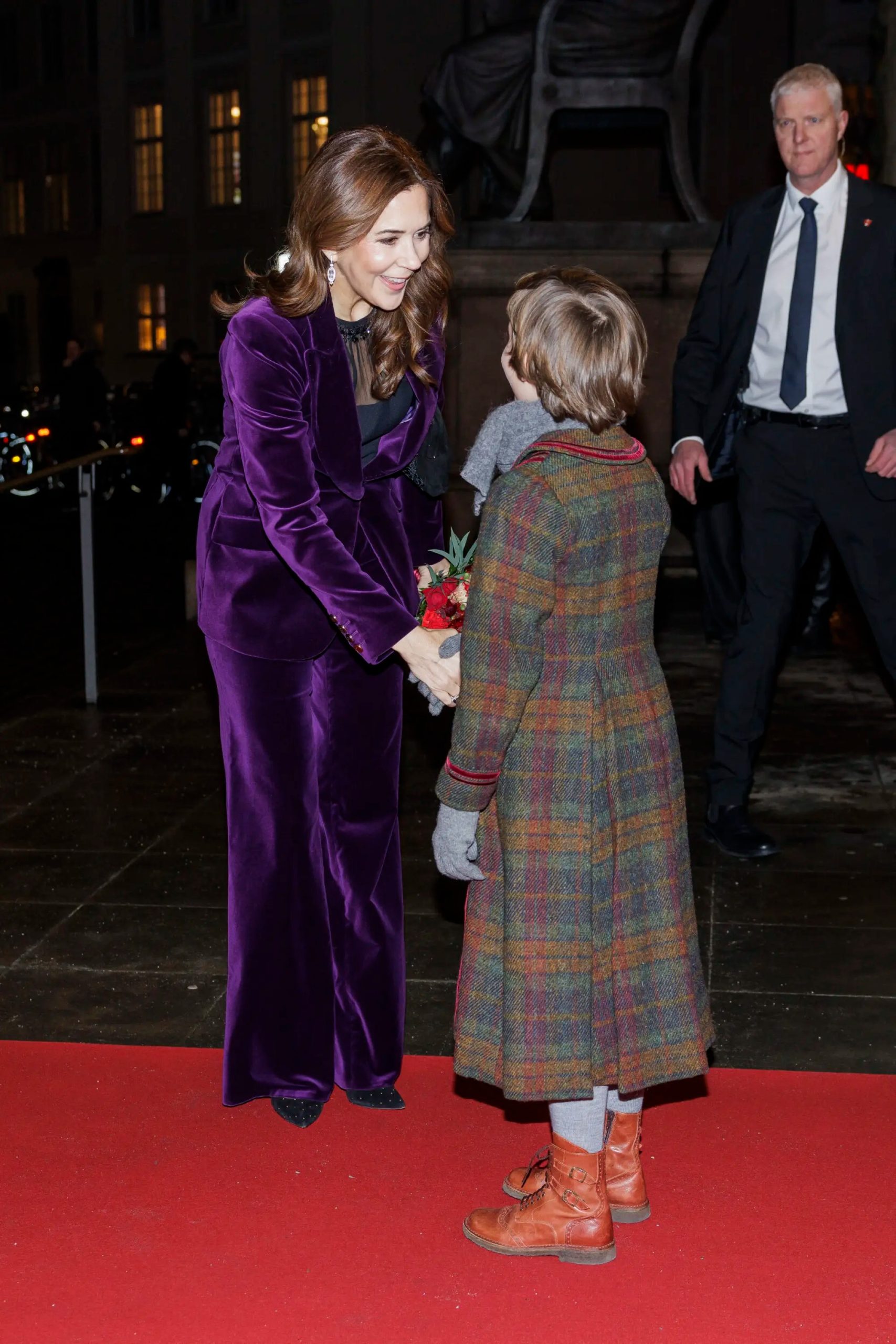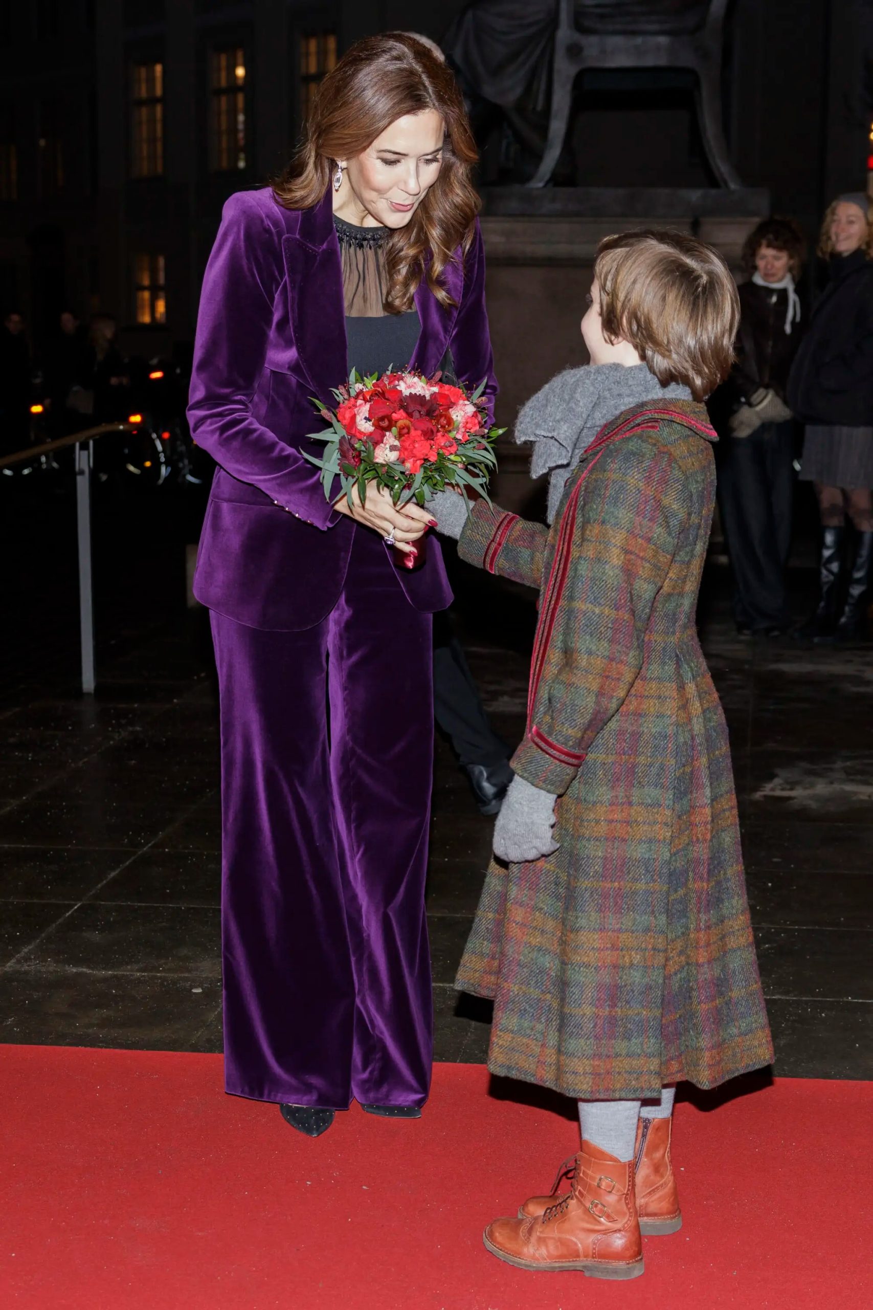 I sit kostume fra forestillingen overrakte hun buketten til Mary – et øjeblik, der fik dronningen til at lyse op i et stort smil. Mary tog imod blomsterne med tydelig glæde og takkede varmt for den fine gestus.