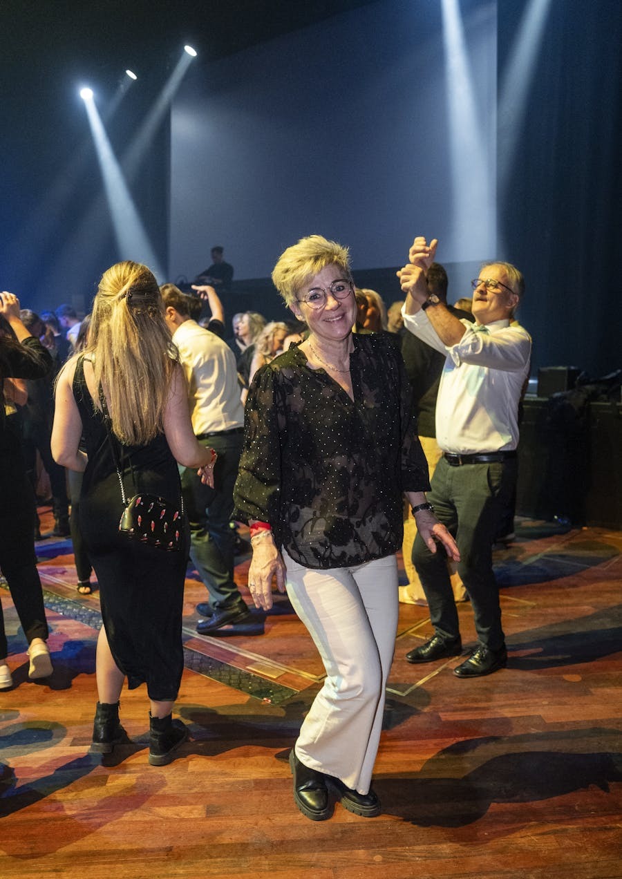 Aftenen bød på både snak, grin og dans. Tina og Leif hyggede sig sammen med flere andre deltagere fra programmet, og da musikken spillede op, var det især Leif, der gav den fuld gas på dansegulvet. Tina fulgte med – afslappet, smilende og tydeligt godt tilpas i sit nye udtryk.