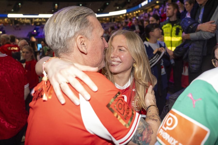 Et øjeblik skilte sig særligt ud. Jacobsen trådte hen til Mathias Gidsel’s kæreste, Katrine, og gav hende et varmt, langt kram. Ingen ord. Bare nærhed. Øjeblikket blev fanget af kameraerne og ramte mange lige i maven.