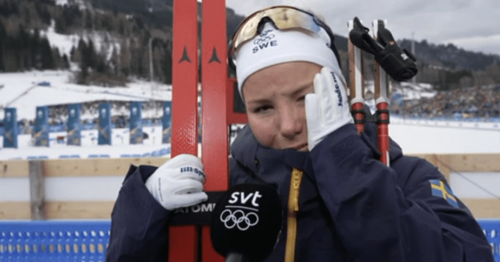 Johanna Hagström måtte se OL-drømmen smuldre, da hun røg ud allerede i kvartfinalen i sprinten ved vinter-OL. Kort efter løbet kunne hun ikke holde tårerne tilbage.