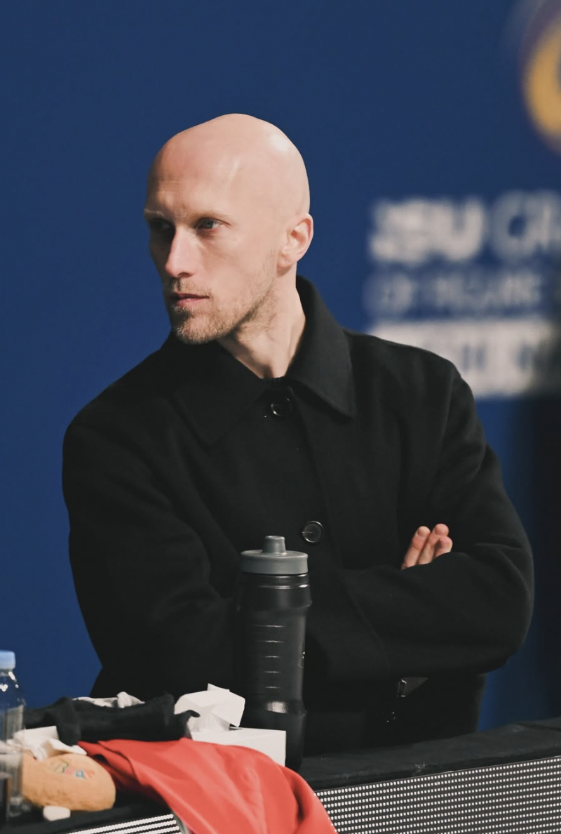 Nogle gange har han siddet på bænken, fulgt en serie til ende, rejst sig, forladt området, skiftet jakke – og været tilbage i rette farver, inden næste atlet skulle præstere.