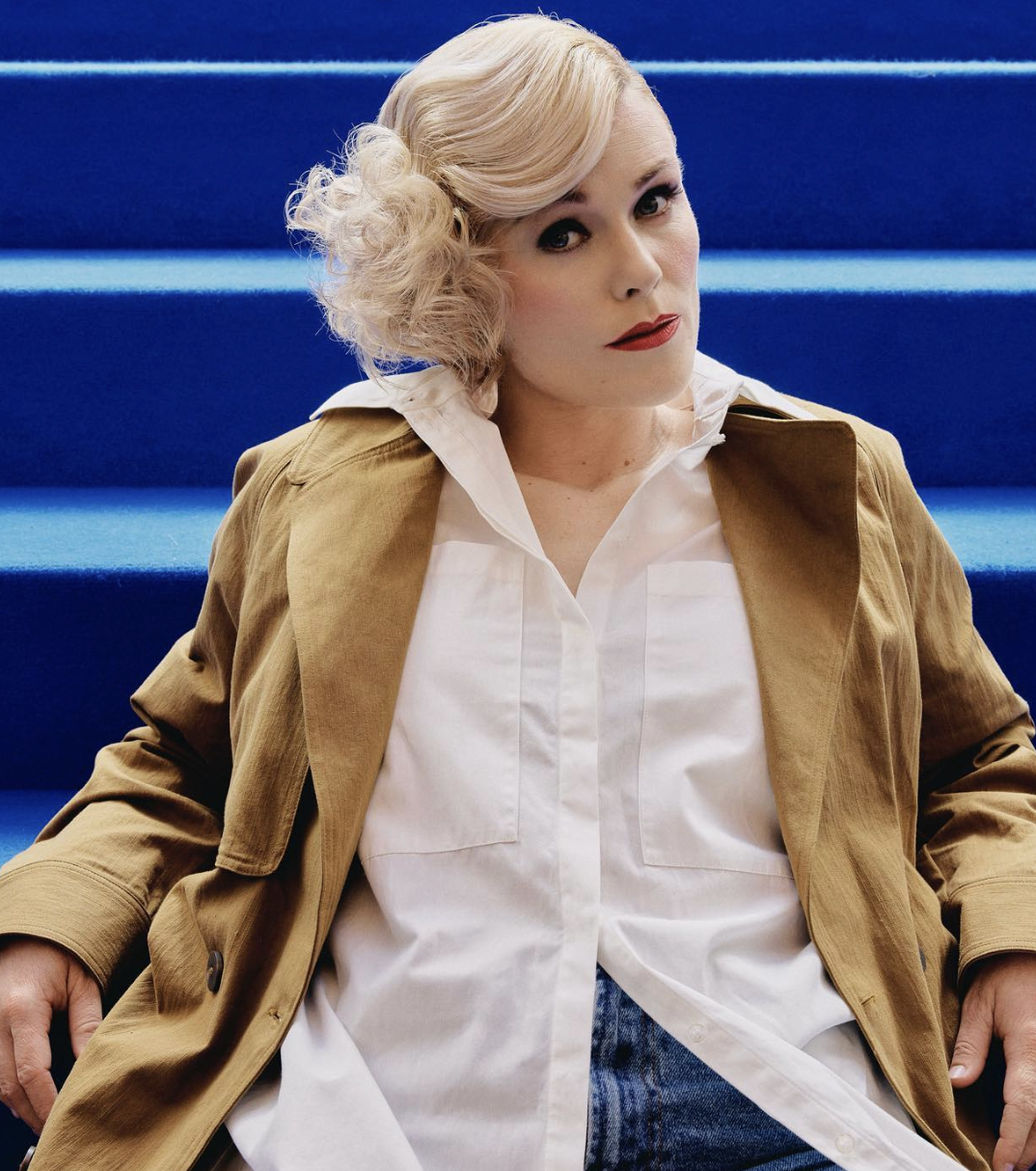 På den røde løber var der ingen tvivl om, at hun omfavnede sin nye livsfase. Den tætsiddende kjole skjulte intet – tværtimod fremhævede den formerne med selvsikkerhed.