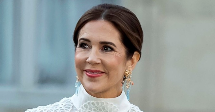 Til den rørende begivenhed valgte dronning Mary en elegant mørkeblå kjole og en smuk safirbroche, der var besat med brillanter og perler.