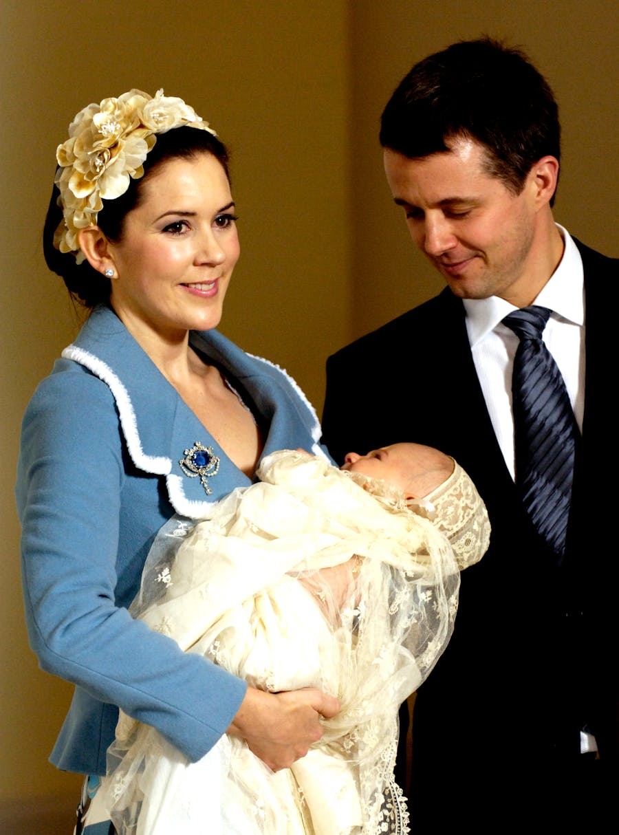 Dronning Mary bar nemlig den samme broche ved kronprins Christians dåb i 2006 i Christiansborg Slotskirke.