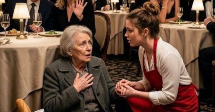 Hun knælede ved siden af en rystende, forvirret ældre kvinde, der var faldet om på gulvet — mens nogle af byens rigeste gæster stod og lo.