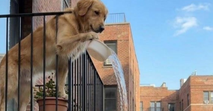 En hund fra anden sal hældte vand på en forbipasserende mand. Han gik op for at kræve erstatning fra ejerne, men der ventede ham en stor overraskelse