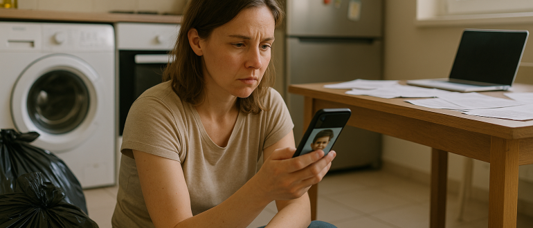 Min søn ringede til mig fra et nummer gemt som ‘VVS’er’ i min mands telefon. Jeg stod i køkkenet og ventede på buddet. Telefonen ringede, ukendt nummer. Jeg