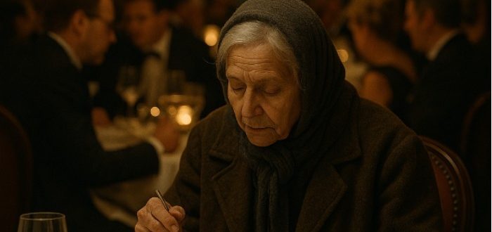 Aften. En af de mest fashionable restauranter i byens centrum. Hvide duge, krystalglas, blødt lampe lys. Gæsterne – mænd i jakkesæt, kvinder i smykker. Musik, duften af vin