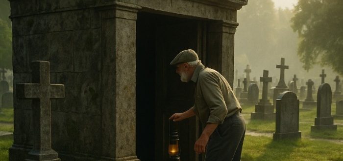 Stormen sluttede pludseligt, som om nogen havde slukket for himlen. Der lå en stilhed over den gamle kirkegård. Den fugtige jord glinsede i solen, og der steg damp