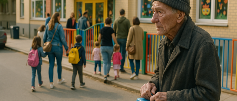 { “title”: “Den gamle mand stod altid ved børnehaveporten, indtil en lærer fulgte efter ham og fandt ud af, hvem han ventede på”, “story”: “Den gamle mand stod