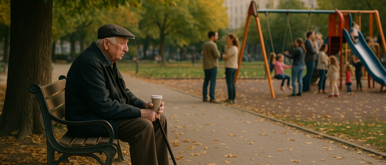 Den gamle mand sad stadig på den samme bænk hver dag og stirrede på legepladsen, som om han ventede på nogen, der aldrig ville komme. Børn løb forbi
