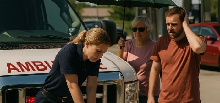 Det var en varm dag. Asfalten nærmest smeltede, luften dirrede over vejen, og selv ambulancens sirener lød mere dæmpede end normalt. Mandskabet var på vej tilbage efter en